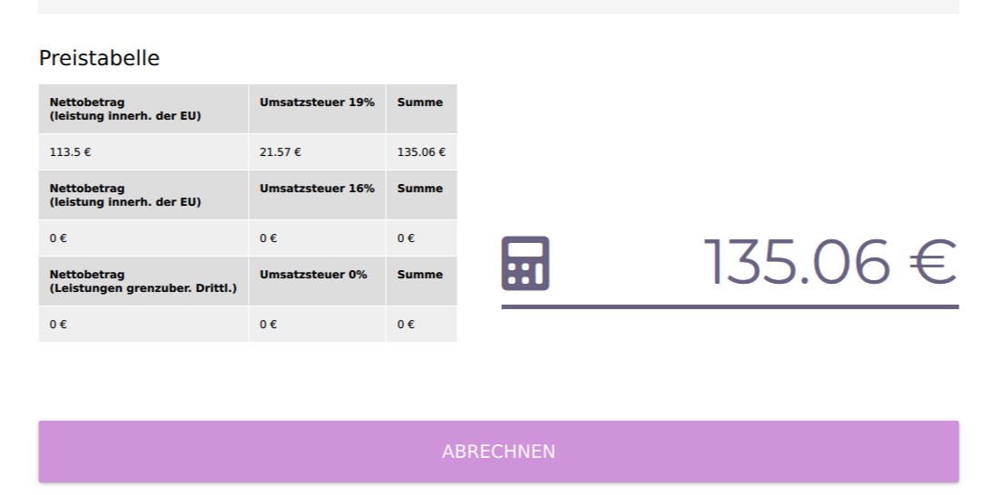 In diesem Abschnitt können Sie erfahren wie hoch der Betrag für die Abrechnung ist.