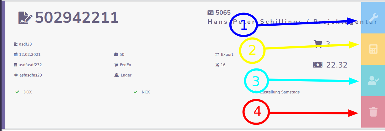 | 4 | Auftrag löschen | Einzelnes Auftrag kann gelöscht werden |
