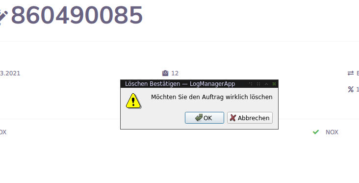 Dadurch kann ein Auftrag gelöscht werden. Durch ein klick müssen Sie den Löschvorgang bestätigen.