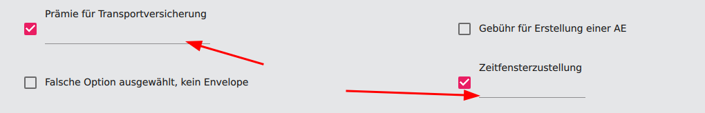 Sobald diese Checkboxen aktiviert werden, erscheint automatisch die Eingabe Felder die benötigt werden um zusätzliche Informationen einzutragen